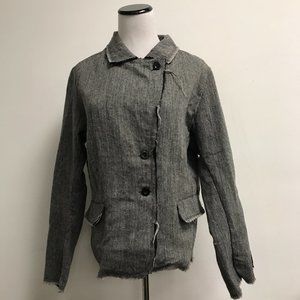 Yo! Japan black wool herringbone fray edge blazer jacket 10