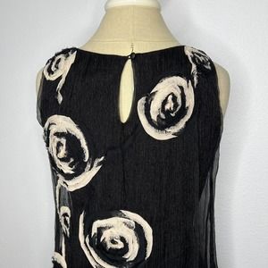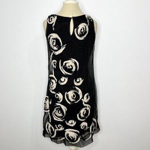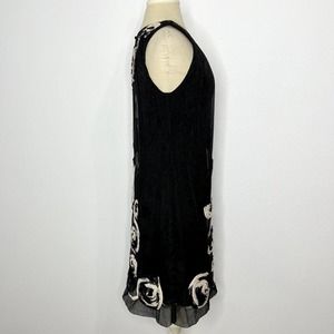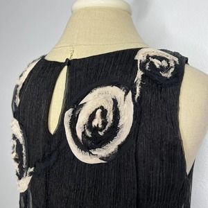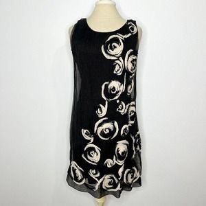 Yoana Baraschi Black & Ivory Floral Sleeveless Crepe Overlay Dress Sz M
