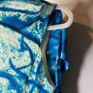 Yoana Baraschi Blue Silk Print Top Size Small Ruffle Sleeve Tie Waist