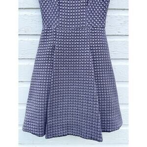 Yoana Baraschi Dress Purple Waffle Knit Sz 4 Metallic Pleated Midi Knee Length