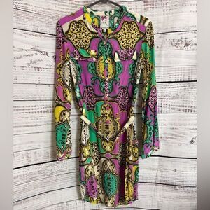 Yoana Baraschi Dress Womens Size 4 Silk Paisley satin Belted Button up Mini