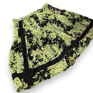 Yoana Baraschi Floral Mini Skirt Small Green Black Pleated Rayon Y2K Skater Punk