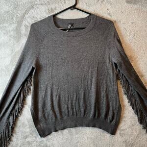 Yoana Baraschi Fringe Crewneck Sweater Wool Cashmere Blend Sz XS Gray Rodeo