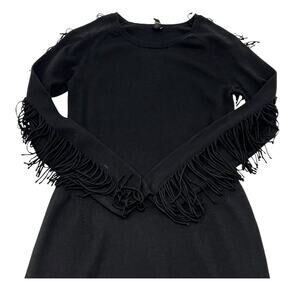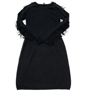 Yoana Baraschi Womens Medium Raven Fringe Wool Cashmere Blend Bodycon Sweater Dress Black MSRP $279