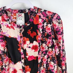 Yoana Baraschi Pink Floral Long Sleeve Shirt Dress Size 8 Pleated Button Front