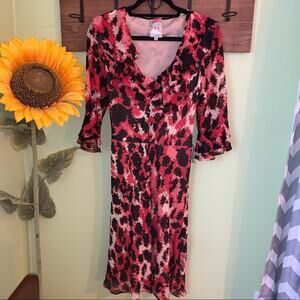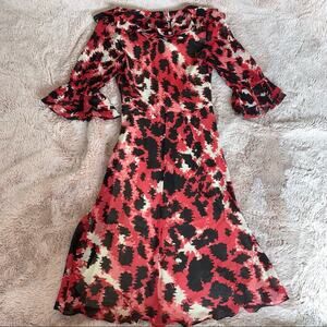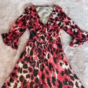 Yoana Baraschi Red & Black Abstract Print Silk Ruffle Dress Size: Medium