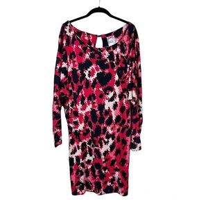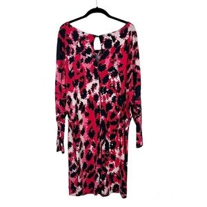 Yoana Baraschi Red Black Printed Silk Dolman Sleeve Tunic Dress Size L