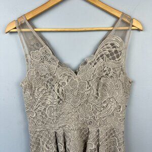 Yoana Baraschi Silver Celestine 100% Silk Lace Sleeveless Cocktail Bridal Dress Size 2