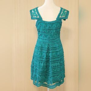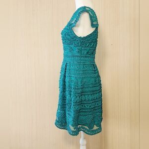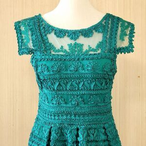 Yoana Baraschi Teal Embroidered Lace Dress Fit and Flare Size 2P Anthropologie
