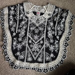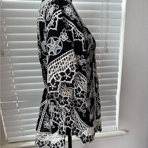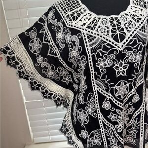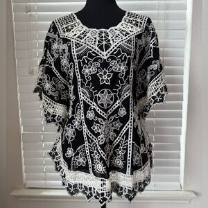Yoana Baraschi Women’s M Black White Embroidered Crochet Tunic Top Boho Style