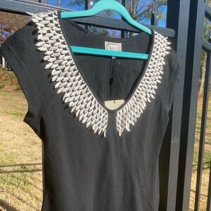 Beautiful yoana baraschi lace crochet trim v-neck dress. Never been worn, with tags attached. Stretchy knit.