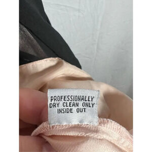 This sleeveless beauty in a delicate shade of pink comes with a trendy tie belt to accentuate your figure. The button-down closure adds a touch of sophistication, while the black scoop neck and beautiful flower-shaped buttons offer a playful twist. Made with luxurious silk and fully lined, this dress feels incredibly soft against your skin. With a lace overlay and ruffle detailing on the shoulder, it's the perfect choice for any special occasion or romantic outing.
