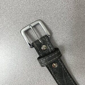 This listing is for a Yoder Leather Company Men's Elephant Leather Belt. Gray/Silver. Brass buckle. Approx 1.25in wide. USA / Amish Made.