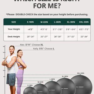 Trideer Yoga Ball for Exercise, Pregnancy & Birthing, 5 Sizes Exercise Ball for Physical Therapy, Stability, Fitness, Quick Pump Included