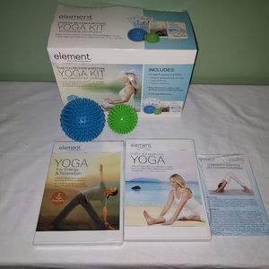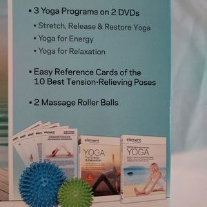Stretch Release & Restore Yoga Kit, includes 3 yoga programs on 2 DVD's,DVD, reference cards of the 10 best Tension-relieving poses,and 2 Massage Roller Balls.
