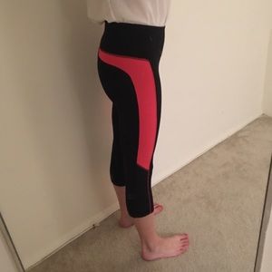 Yoga pants that cut off mid calf. Worn only a couple of times - in near perfect condition. 85% polyester 15% spandex