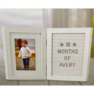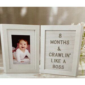 This set includes three soft cotton muslin swaddle blankets and a versatile letterboard frame for capturing special baby moments.