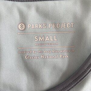 Brand new with tags. Razorback top. Full length skinny leggings. Gray and dark gray. From The Parks Project "we're keeping it green". Made with complete recycled polyester.