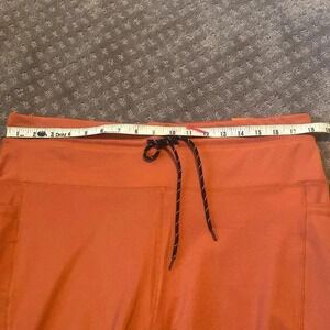 Cute yoga pants In burnt orange color. Drawstring waistband, side hip pockets, 7/8 ankle, & high rise waist