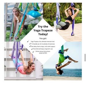 Never been used yoga trapeze set by YogaBody! Once purchased I will forward the pdf files and videos that include different stretches, workouts, etc.