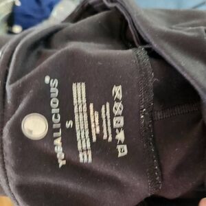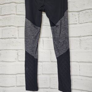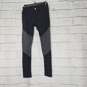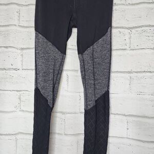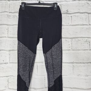 YogaLicious Womens Black Gray Mesh Inserts Mid-Rise Cropped Leggings Size Small