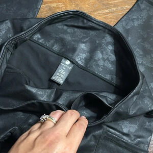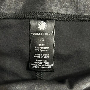 Yogalicious Black Floral, Lux High Waist Elastic Free, 2 Side Pockets, Ankle Leggings, with inside waist hidden pocket, Size L.