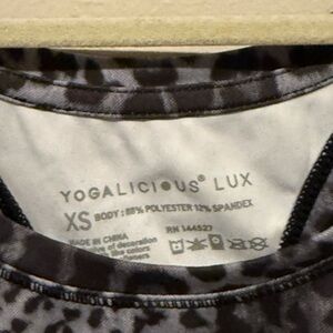 Elevate your wardrobe with the Yogalicious Black and Gray Fitted Crop Tank Top, featuring a sleek sleeveless design and a chic leopard print. This stylish top is crafted from a stretchy, form-fitting material, making it perfect for both casual outings and athletic activities. The modern cut and bold pattern ensure you stand out with confidence.