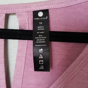 Soft stretchy fabric. So cute! Excellent condition. Great fitness top or just to lounge in. Lavender color like stock photo is showing pink with my camera. Lounge, cute, fall, autumn, witchy ,sweet, goth, sporty, yoga, curvy, plus