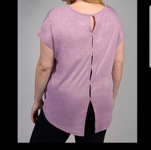 Yogalicious Casual Workout Cut Out Back Short Sleeve Top 1X