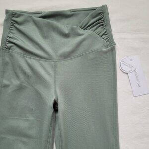 Yogalicious Flare Leggings High Waisted Crossover Ruched Waist Sage Green Sz XS