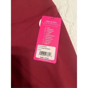 The pictured item is a pair of Yogalicious Lux Leggings in the color "burnt raspberry". These leggings are high-waisted and ankle-length, made from a stretchy, soft material, often described as "buttery soft". Yogalicious is a brand known for activewear, offering items like leggings, shorts, and tops. Their Lux line is noted for its comfortable and soft fabrics, suitable for activities like yoga or general workouts.
