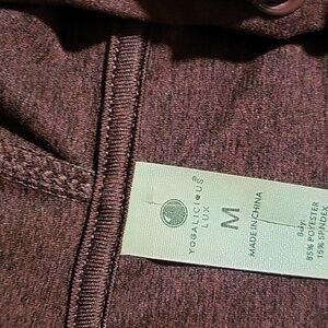Yogalicious Lux Long Sleeve Full Zip Maroon Heather Hooded Sweatshirt with pockets in Size Medium.