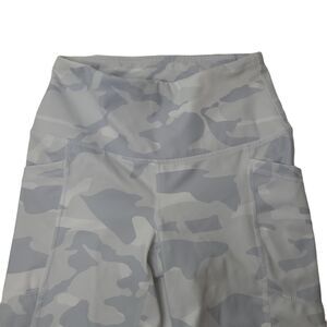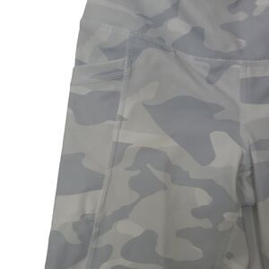 Yogalicious Lux Womens Extra Small, Midrise Bike Shorts, Gray Camo, side pockets Spandex. Good Pre-Worn Condition. See Pics for Details.