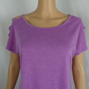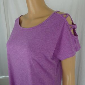Yogalicious Purple Pink Round Hem Cold Shoulder Crisscross Strap T Shirt Tee Med