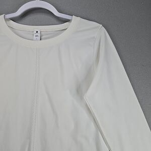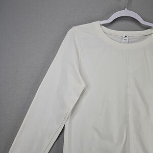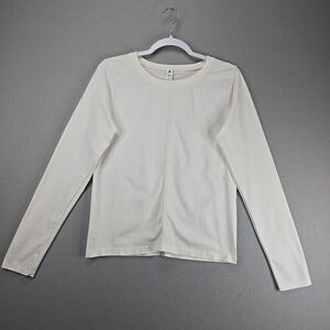 Yogalicious Women’s Long Sleeve Crop Top Ivory Size L WORK OUT Crew Neck