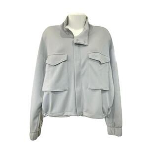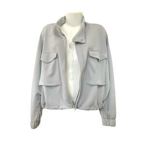 Yogalicious Women's Ultimate Gray SoftLite Scuba Autumn Jacket Pockets | Size L