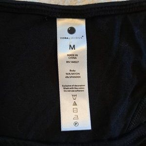 Excellent condition tank top from Yogalicious that wraps/ties in the back, with a rounded neckline. Very lightweight and soft. Size Medium; measures about 17 inches between the pits and 23 inches long.