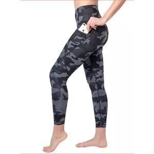 Yogalicous Camo Black Gray Pockets 7/8 Length High Rise Leggings Size Medium