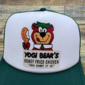 Yogi Bear's Honey Fried Chicken Mens Trucker Hat Green Snapback 60s Defunct Cap
