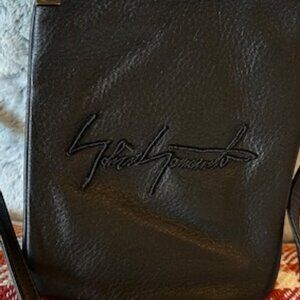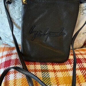Yohji Yamamoto UNISEX Black Logo-embroidered Leather Shoulder Bag/Pouch Sacoche