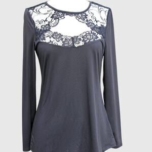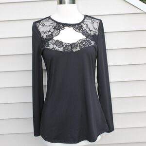 Yoins Women's Black Blouse Sexy Lace Cutout Open Neckline Size Small