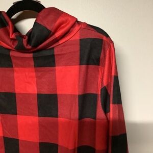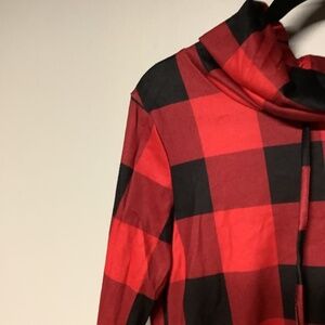 Yoins Women’s Cowl Neck Knit Sweater BuffaloPlaid Light Crewneck XL Red & Black
