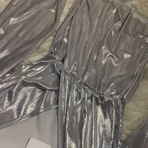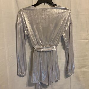 Size small NWT long sleeve romper. It’s hard to get a great picture of the shimmering effect of this material. But… This is perfect for your New Year’s Eve party!! Smoke free and pet free home