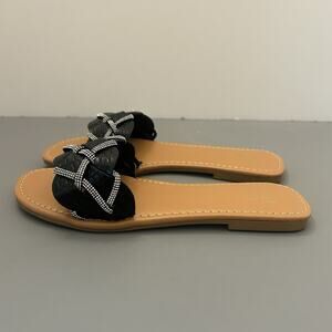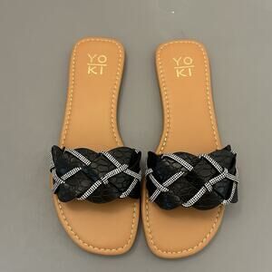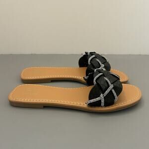 Yoki Alabama-20 Black Rhinestone Braided Slide Sandals Flats Women's 7 NEW