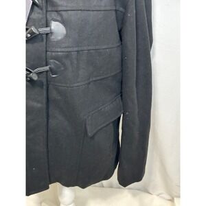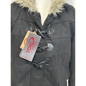 Yoki Black Wool Blend Toggle Coat Faux Fur Hooded Jacket 1XL Womens