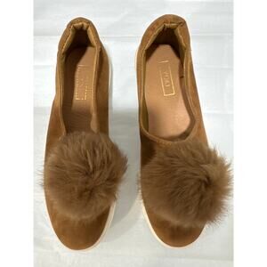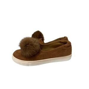 Yoki Brown Suede Pom-Pom Flats - Women's Size 8