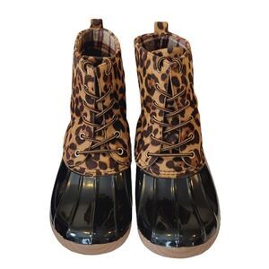 Yoki Dylan-33 Black Leopard Print Duck Boots Size 10