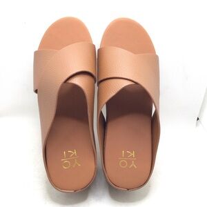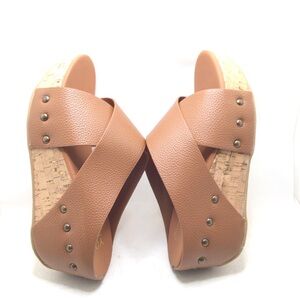 Yoki Fashion Womens Netta Cognac Slip On Cross Strap Wedge Sandals Size 11. New in box. From smoke free home.