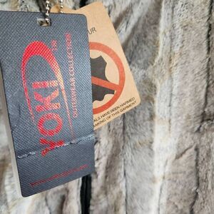 Yoki Jacket Faux Fur Womens Large Soft Ivory Tan Gray Mix Fuzzy Vegan Chinchilla