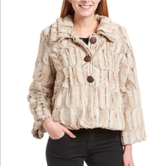 Yoki Jacket Womens Large Cream Faux Rabbit Fur Long Sleeve Button Up SOFT!!!
